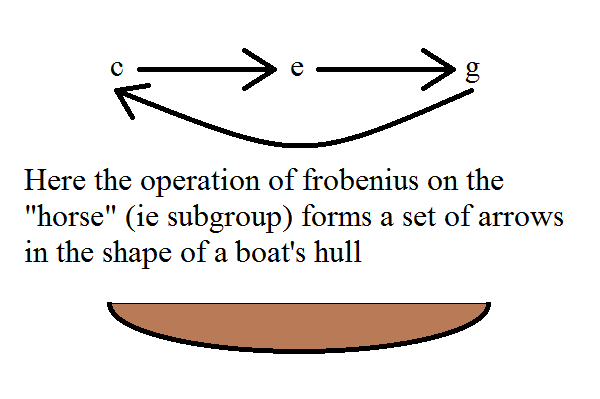 Thus the ships that come against the north as he moves toward the south (second column from left) interrupt the choice of unity as well as the seven cycle. The king is "grieved" in moving out of his fortress into the centre element "a" in between [b,d,f] = a = {c,e,g}.