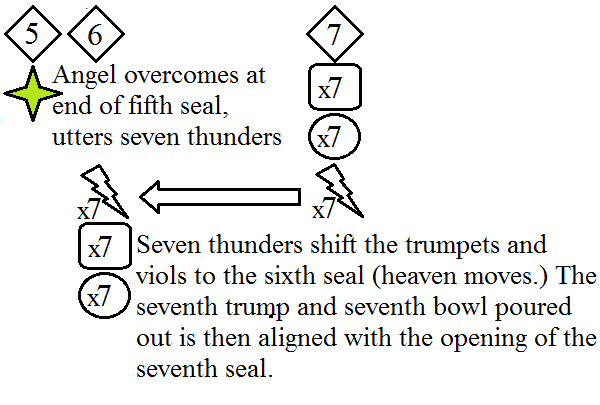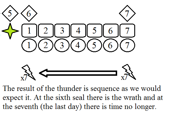 The wrath as poured out then has appeared to be totally shifted in the sequence. Heaven indeed, has moved as seven thunders.