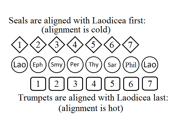 However, the devices in the seals and trumpets themselves align differently with the seven letters, we could show this as if it were "cold and hot" toward the conviction of the laodicean letter.
